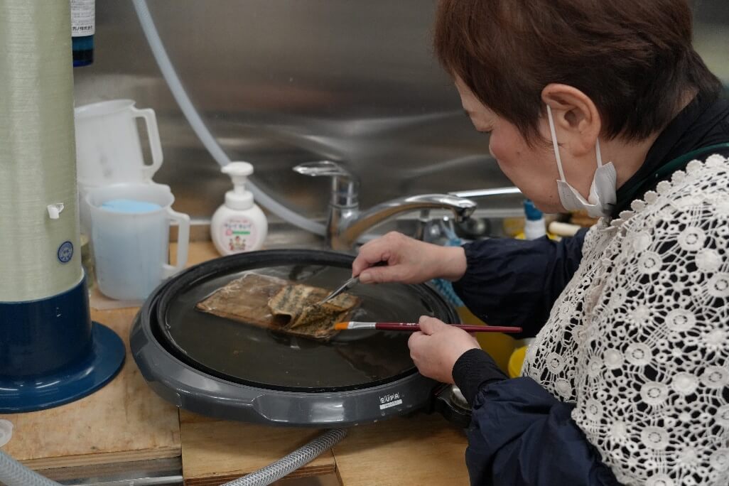 The first person we spoke to was Atsuko Tomikawa, who is in charge of restoring materials and is a staff member whose work symbolizes the "connections" of the Nagasaki Museum of History and Culture. In the restoration room, where every tool and material is packed with experience and know-how, we were shown actual restoration work and spoke to her about her work in passing on materials that tell the history of overseas exchanges to the next generation.