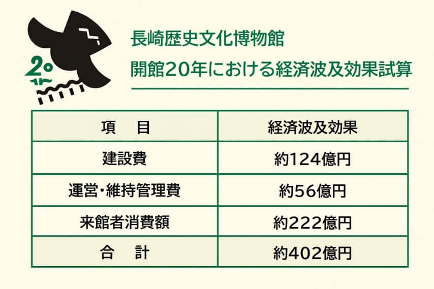 This survey calculated how much the Nagasaki Museum of History and Culture's operating expenses, special exhibitions, PR activities, etc. contributed to the local economy, and found that it had an economic effect of approximately 40.2 billion yen over a 20-year period.