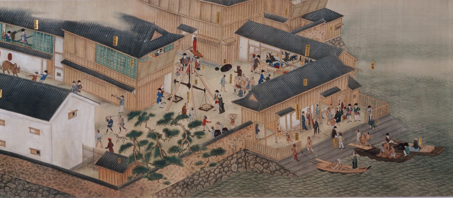 Diversity seen in the trading scene at Dejima depicted in the "Tang Dynasty and Dutch Dynasty Picture Scroll" (by Ishizaki Yushi, housed at the Nagasaki Museum of History and Culture)
